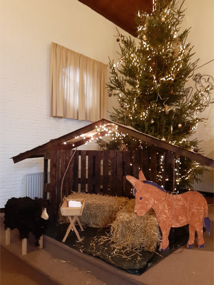 Deze prachtige kerststal (gemaakt door Melle) stond in de kerk,
