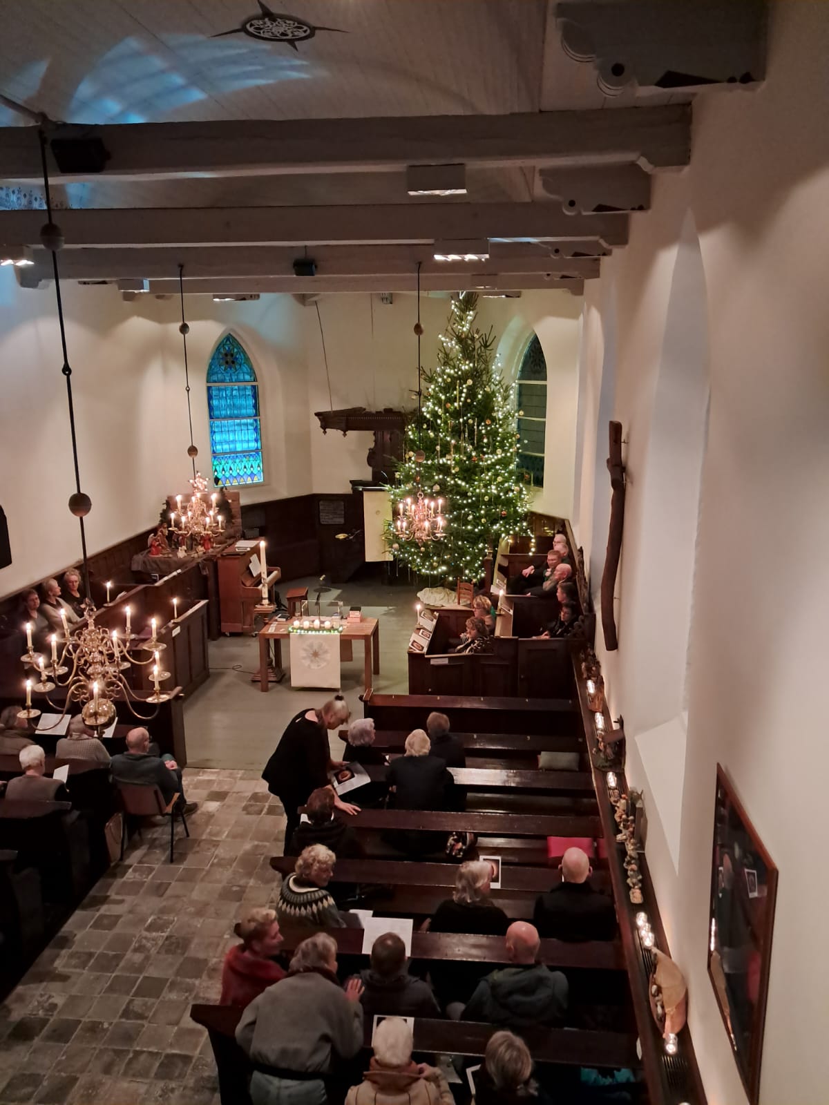 Daarnaast zong een koortje 4 kerstliederen. Tijdens de collecte kreeg iedere kerkganger de keuze uit een lekker chocolaatje of schuimpje.
