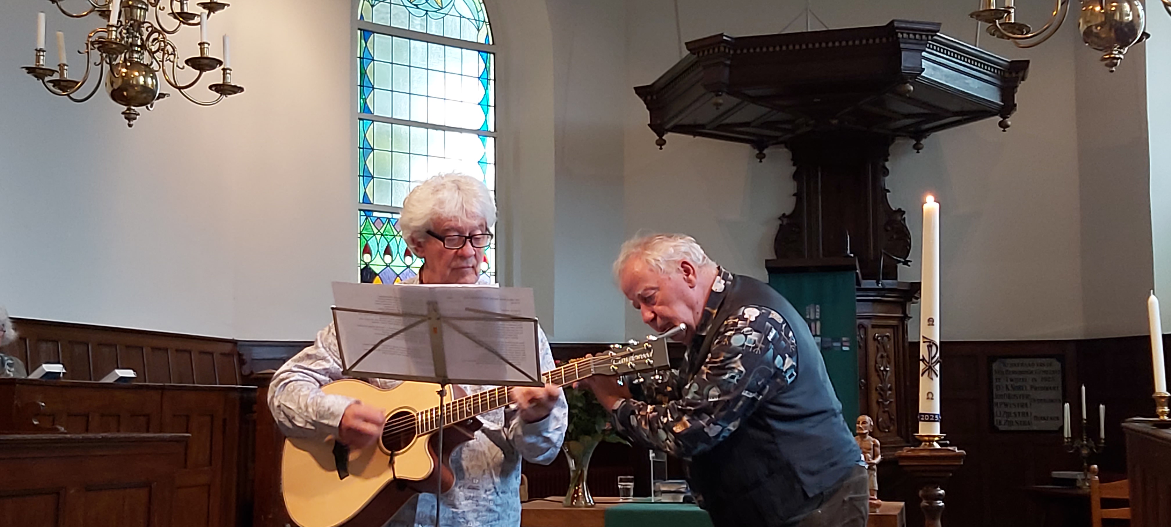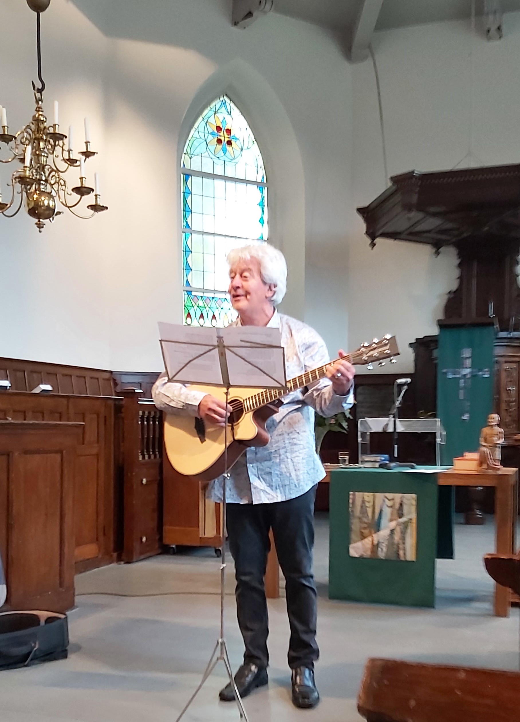 Vanochtend hadden we in de Petruskerk een prachtige muzikale dienst met zanger Jannie du Toit. Hij zong Zuidafrikaanse liedjes en begeleidde zichzelf daarbij op de gitaar. Bij een aantal liedjes speelde Ivo mee op zijn dwarsfluit.