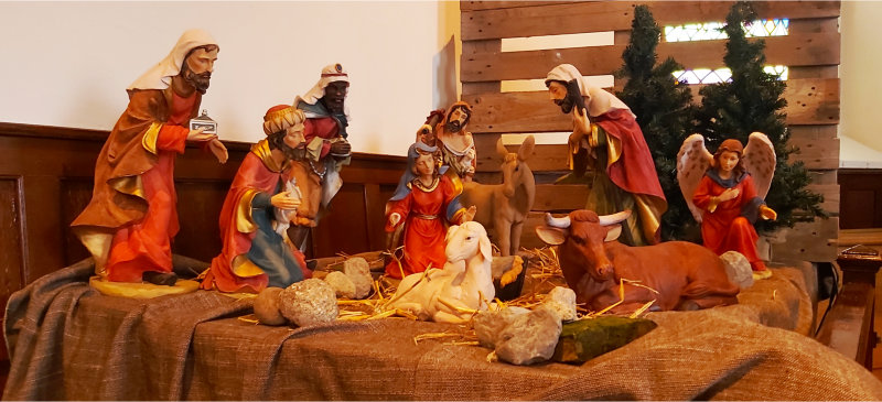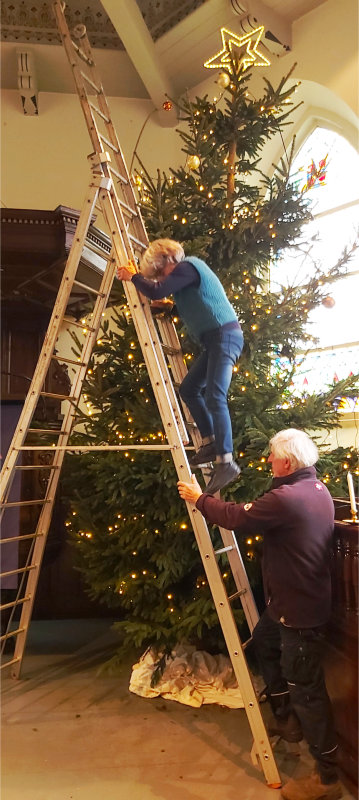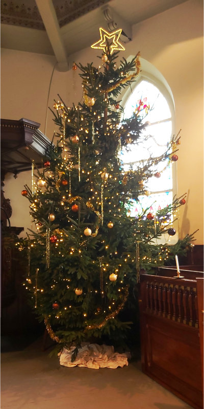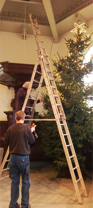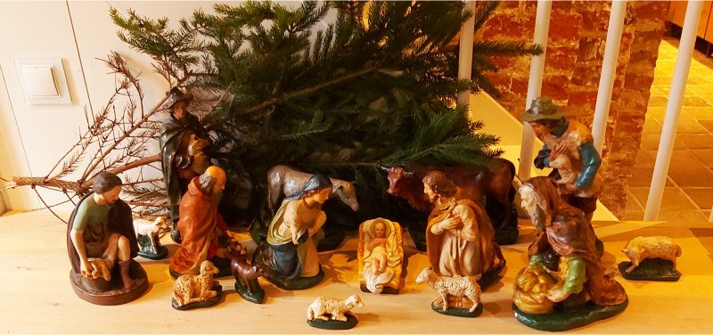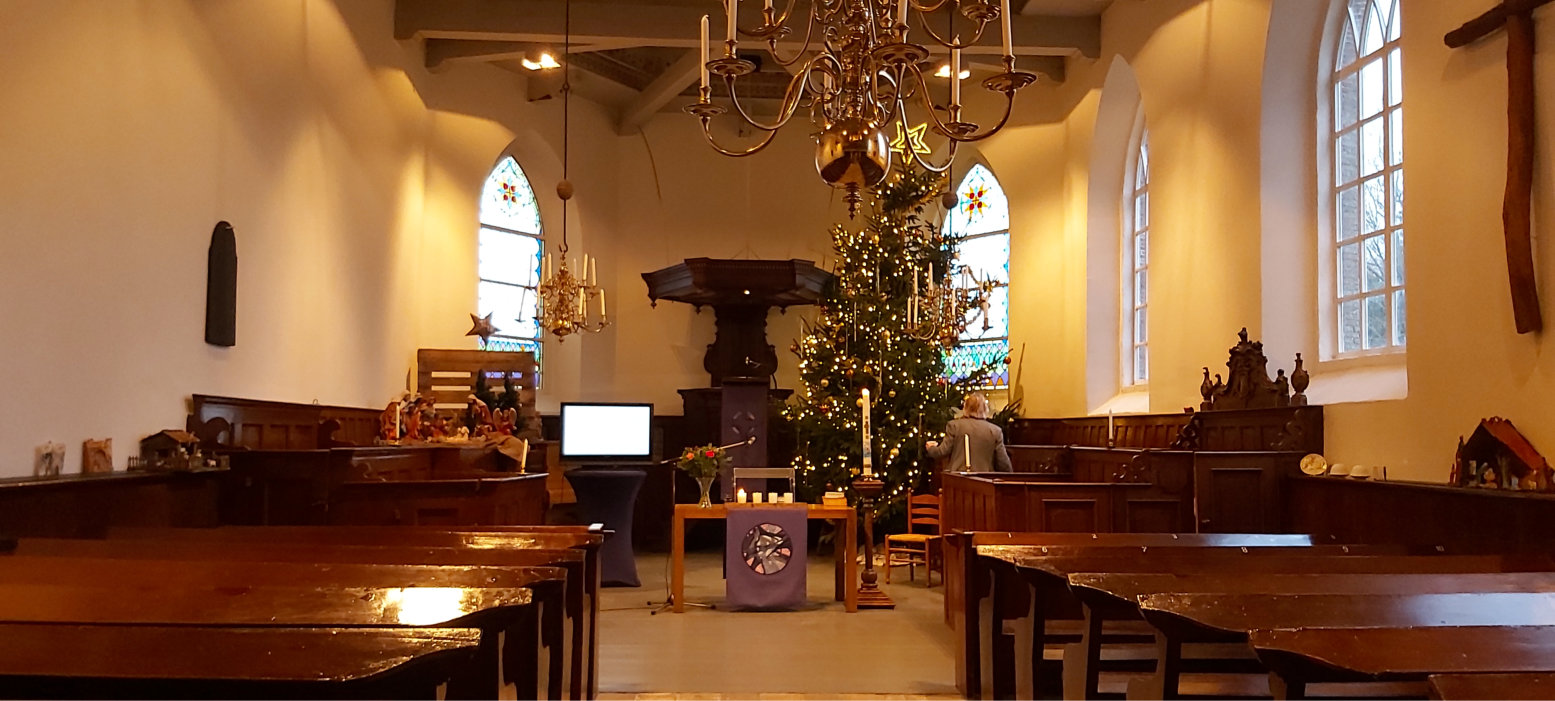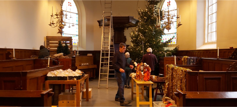 Een aantal gemeenteleden heeft vervolgens de boom en de kerk prachtig versierd. Ds. Thijs Oomens heeft een paar mooie kerststallen geplaatst.