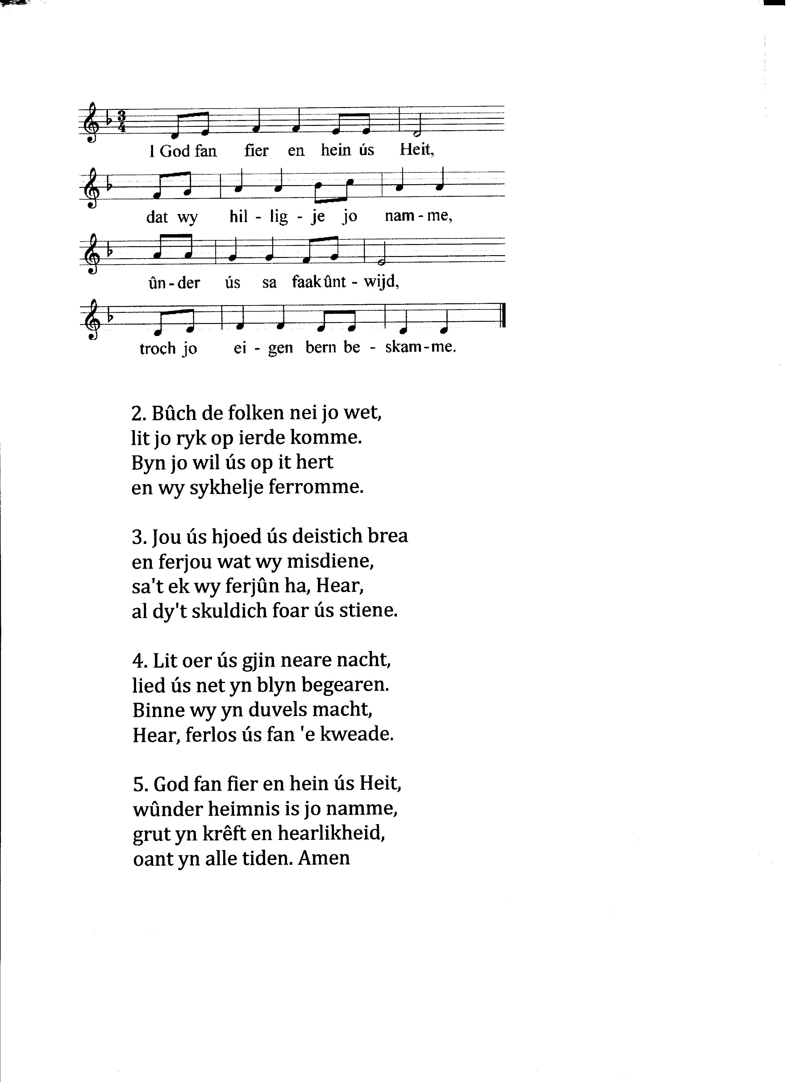In gebed zijn eindigend met God fan fier en hein ús Heit