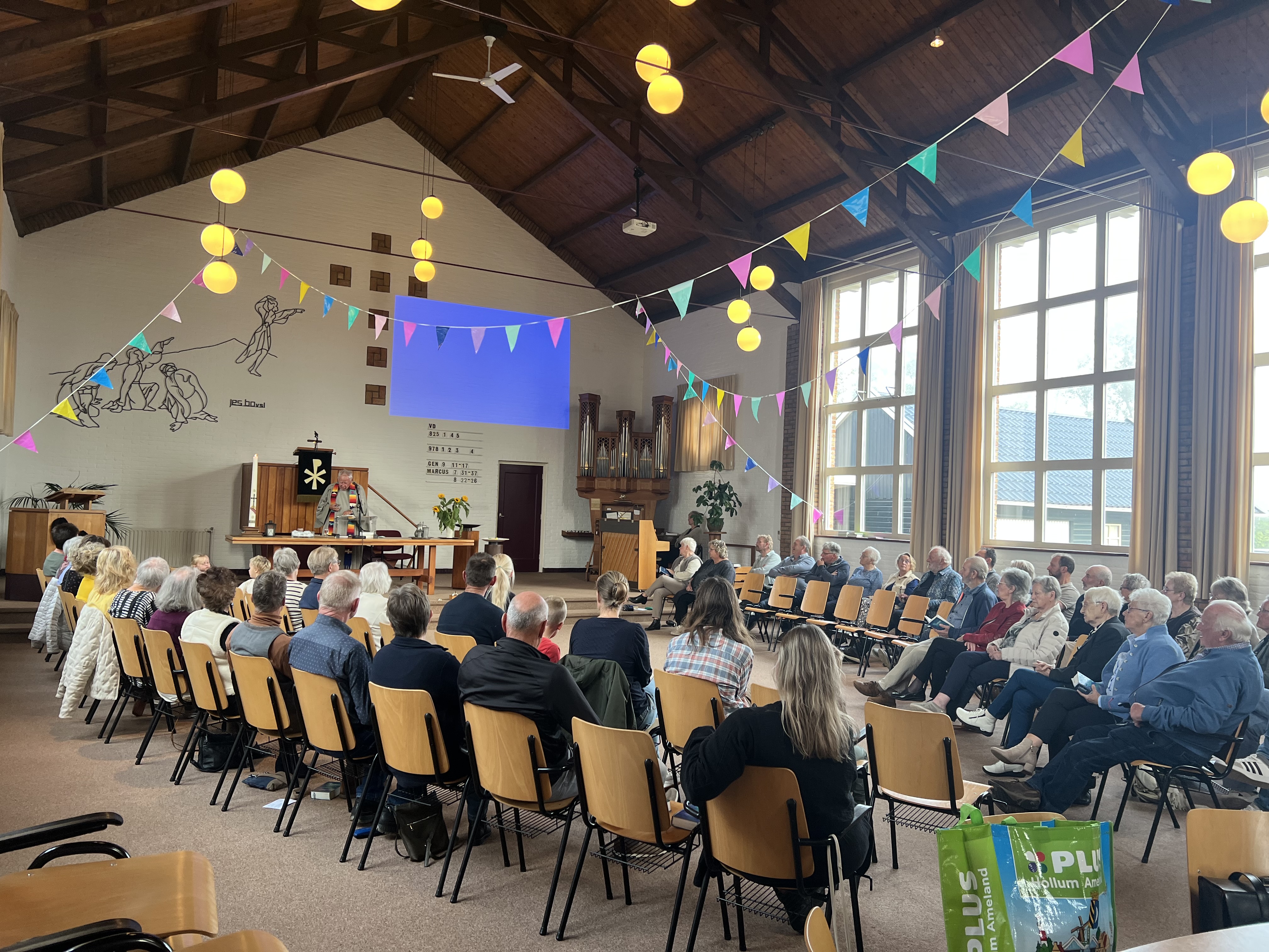 Tijdens de dienst werd in een film op de beamer uitgelegd hoe een regenboog ontstaat. Voor wie dit nog eens wil bekijken, zie: